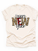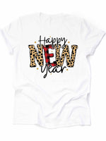 - New Year's 2023 Tee, Red Buffalo Plaid and Leopard Happy New Year Design on premium Bella + Canvas unisex shirt, 3 color choices, plus size
