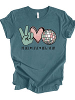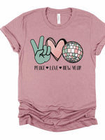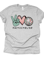 - New Years Tee, Super Cute Peace Love New Year, New Year Disco Ball Design on premium Bella + Canvas unisex shirt, 3 color choices, plus size