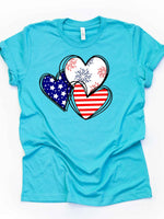Patriotic Tee, Three Red, White and Blue Hearts, USA Flag Hearts Design on premium unisex shirt, 3 color choices, plus sizes available Patriotic Tee, Three Red, White and Blue Hearts, USA Flag Hearts Design on premium unisex shirt, 3 color choices, plus sizes available