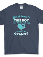 - Personalized grandma shirt There's This Boy Who Stole My Heart Gildan Unisex Tee