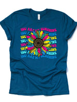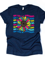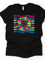 Repeating You Are My Sunshine, Pretty Neon Sunflower with Leopard Design, premium unisex shirt, 3 color choices, 3x sunflower, 4x sunflower