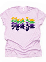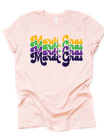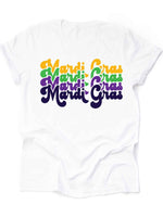 - Retro Style Mardi Gras Tee, 70s Repeating Mardi Gras Design, premium unisex shirt, 3 color choices, 3x mardi gras, 4x mardi gras, plus size