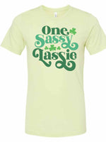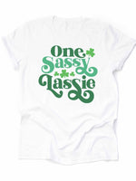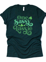 St Patrick's Day, One Sassy Lassie, Funny St Patrick's & Clovers Design, premium unisex tee, 3 color choices, 3x st patrick, 4x st patrick