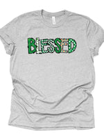 St Patrick's Day Tee, Super Fun BLESSED St. Patrick's Print Design on premium unisex tee, 3 color choices, 3x st patrick, 4x st patrick