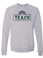 Teacher Sweatshirt, Cute Green Plaid TEACH Them To Be Kind Design, Unisex Sponge Fleece Raglan Crewneck Bella + Canvas, Fall Sweatshirt