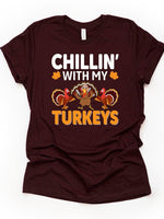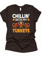 - Thanksgiving Tee, Chillin' With My Turkeys Design, Family Thanksgiving premium unisex shirt, 3 color choices, plus size, 3x, 4x christmas