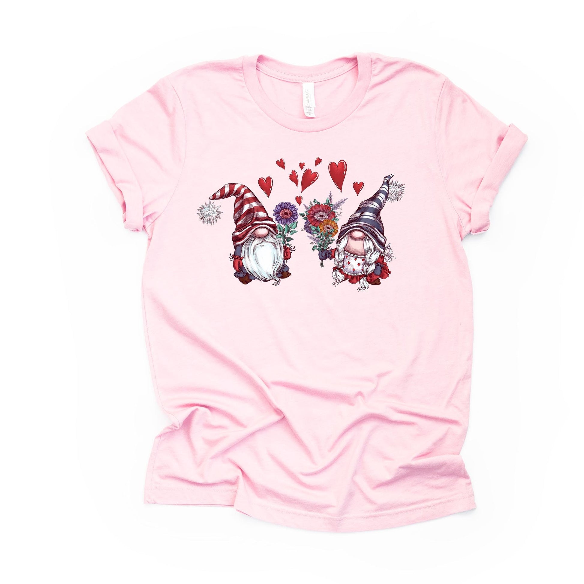 Valentine's Day Tee, Gnomes in Love, Valentine Gnome Couple Design on premium unisex shirt, 3 color choices, 3x valentine, 4x valentine
