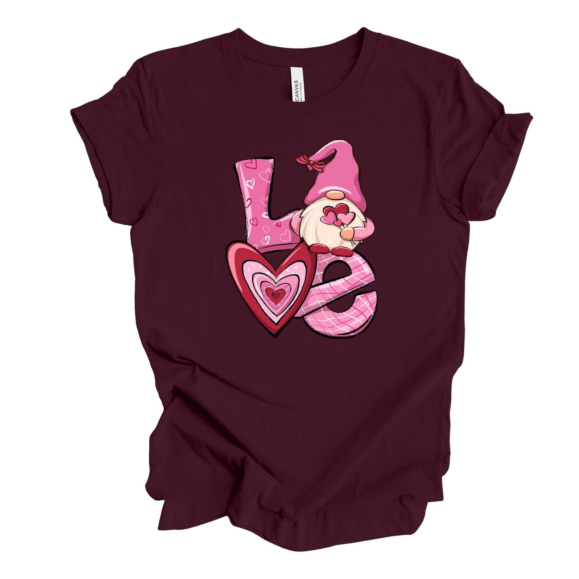 Valentine's Day Tee, Super Cute Valentine Gnome, LOVE Gnome Design, on premium unisex shirt, 3 color choices, 3x valentine, 4x valentine