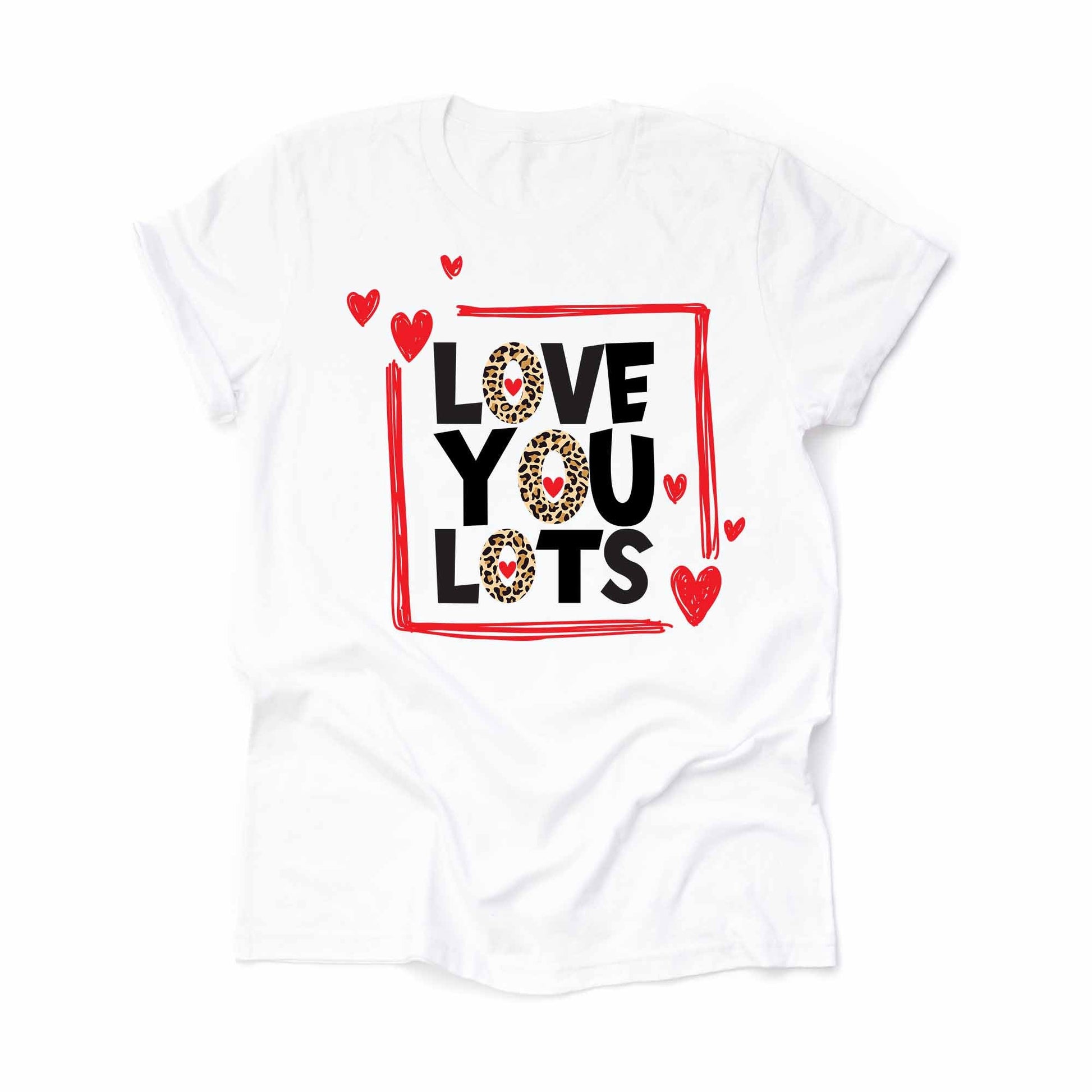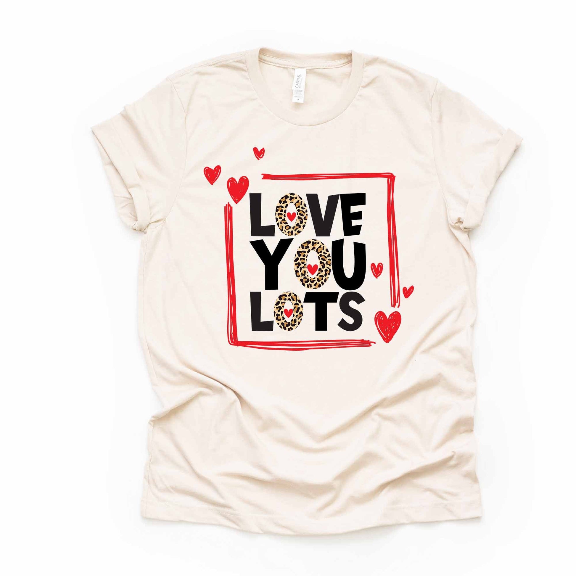 Valentine's Tee, Super Cute Leopard Love You Lots Heart Design, premium unisex shirt, 3 color choices, 3x valentine, 4x valentine, plus size